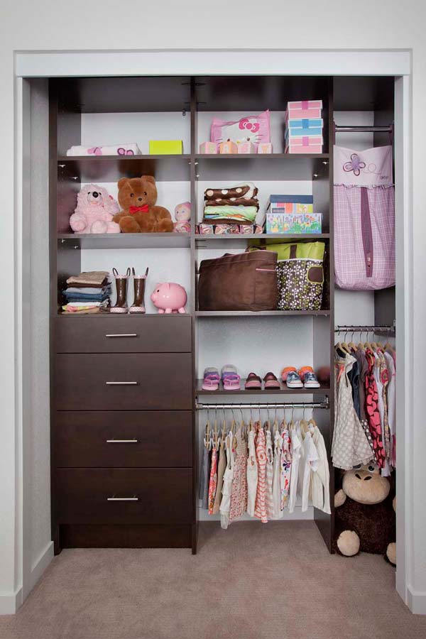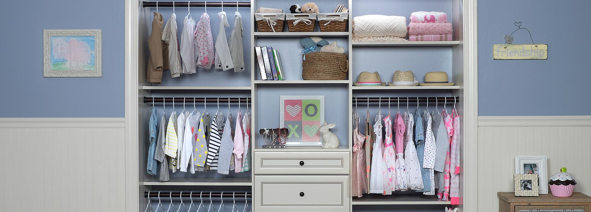 Why choose an AGCD closet for your child’s closet? Reason one, our closets are made from high-quality, durable materials so you won’t have to deal with ugly scuffs and scrapes. Reason two, our organization solutions are adjustable so that closet space can grow with your child. Bigger clothes? No problem. Just raise the hanging rod! Finally, we provide multi-use organizers and cubby spaces to make room for both clothes and toys.