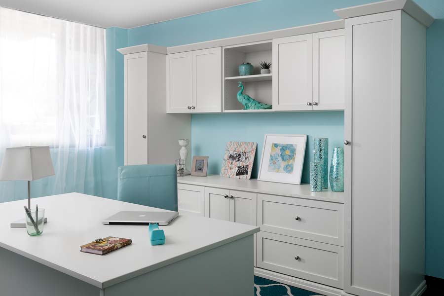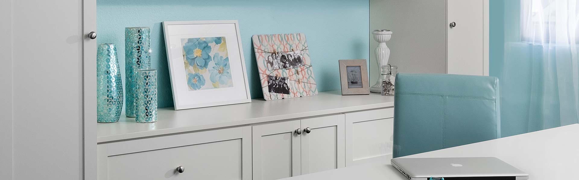 Our custom home office solutions don’t stop at cabinets – we also make it easy to personalize your home office with accessories and a wide color selection. Choose from 11 different colors and six different styles to complement your home’s design or match your existing décor. There are endless ways to customize your home office system, and our accessories make it easy to get organized – and stay that way.